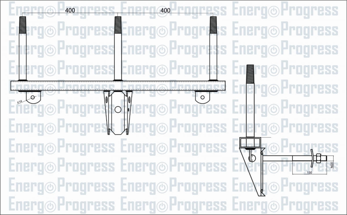 Attālums starp izolatoru tapām 400mm